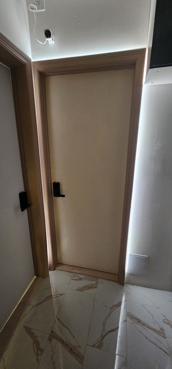 This large, well-furnished room directly connects to the backyard, offering a spacious and secure retreat. Inside, you’ll find a cozy bed, a functional desk with a chair, a beautiful decorative fireplace (non-functional, for aesthetic purposes only), and built-in shelves for extra storage. The room is enhanced with modern features like an app-controlled lighting system that lets you change colors to match your mood, a fresh air system controlled by a switch, and a stylish center light.