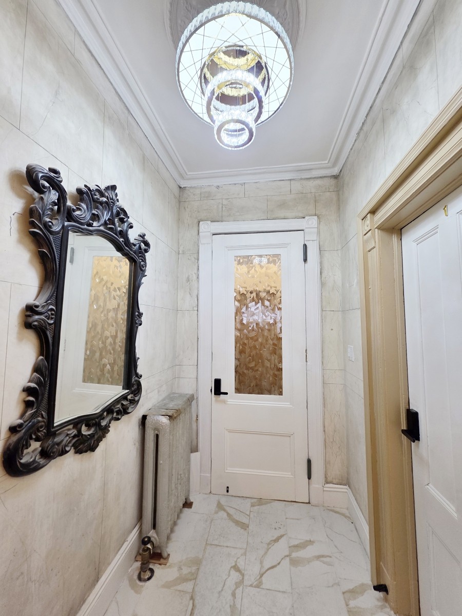 1 block from the J train. The home is a 15 – 20-minute ride to the first stop in Manhattan during rush hour, a few subway stops away from Woodhull Hospital, and a short travel distance to Wyckoff Hospital. The closest bus routes are B26, B20, B7, B52, and B60, 6 blocks away from the L train.